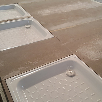 Realizzazione di massetto a secco con pannelli in cementolegno fono-isolante per portare il solaio a norma di legge con i nuovi parametri di abbattimento