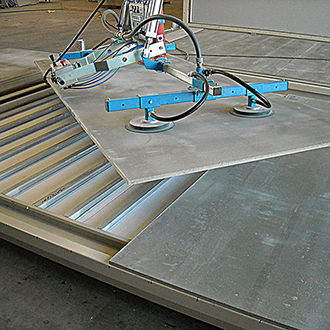 Soppalco resistente al fuoco Classe A2 lastra in cementolegno 20 mm dimensioni 1220 x 520 montata su lamiera grecata in soppalco con struttura
